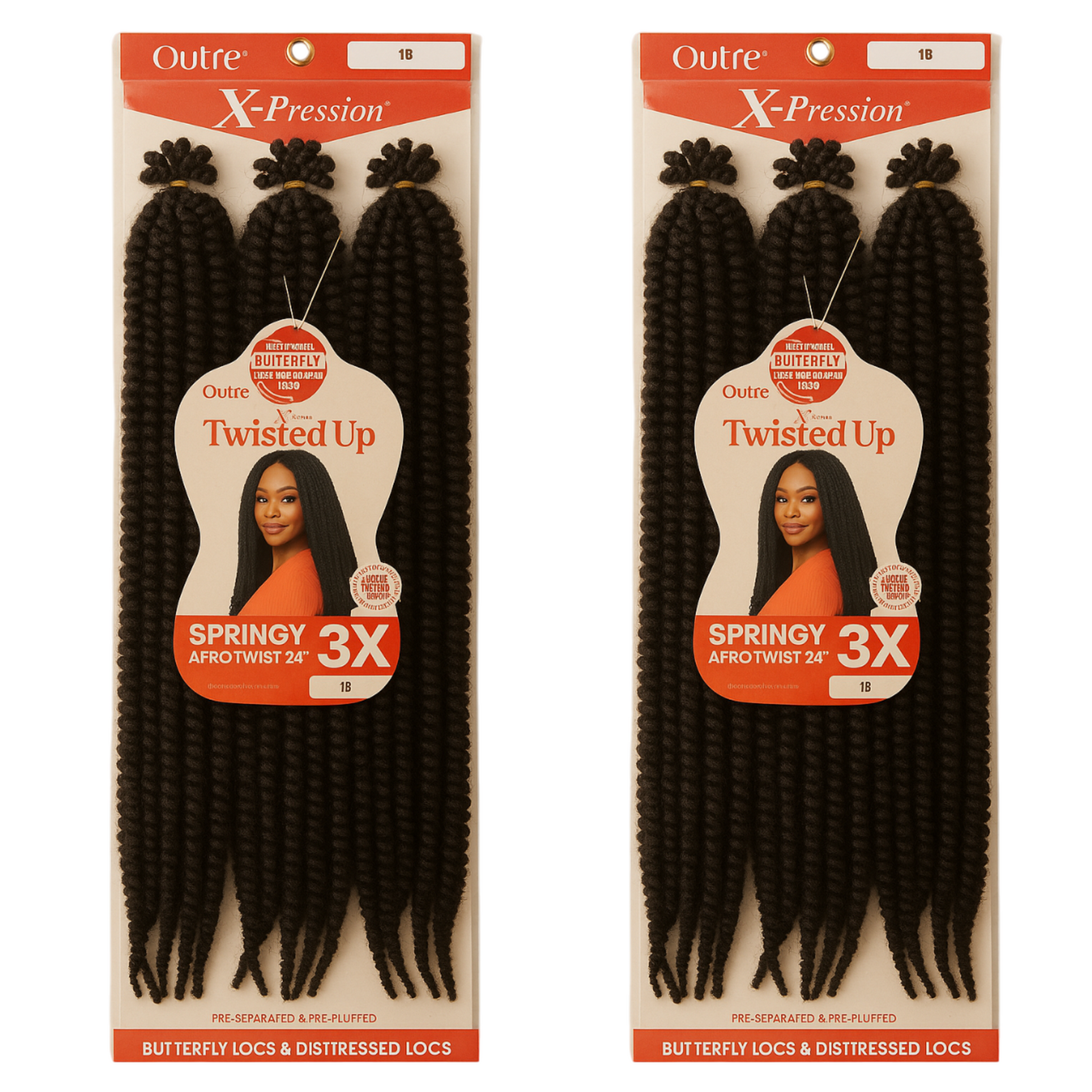 - Outre Crochet Braids X-Pression Twisted Up 3X Springy Afro Twist 24" (2-Pack, 1B)